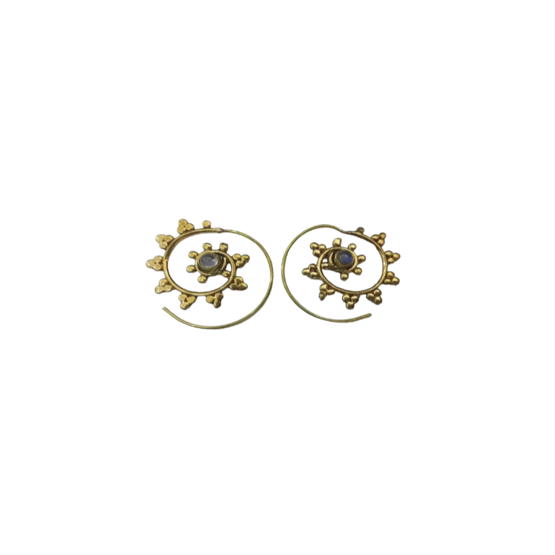 Boucles d'oreille laiton spirale avec pierre naturelle.
