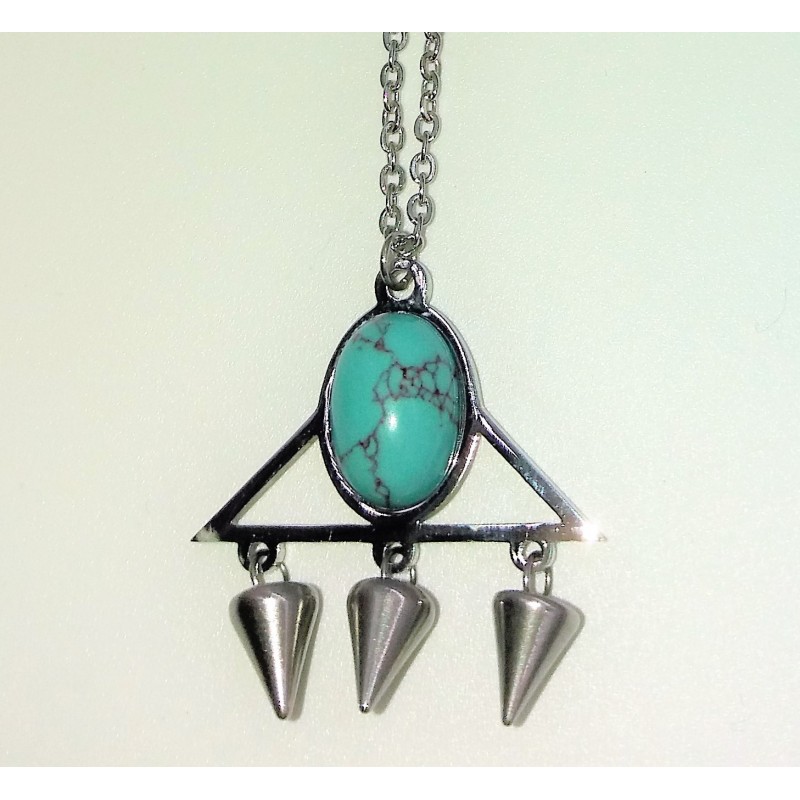 Collier en acier inoxydable pyramidale bleu turquoise