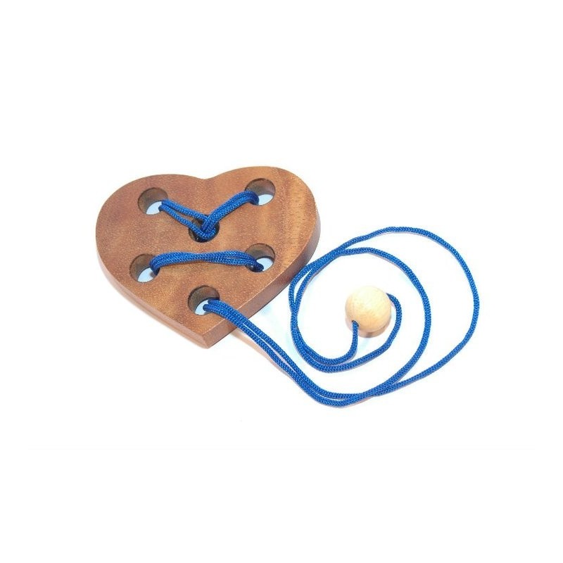 Ce casse-tête coeur qui est tout d'abord complètement ficelé, ligoté a plusieurs vertus. Premièrement, il va vous permettre d'exercer votre esprit et votre aptitude à résoudre cette énigme en 3 dimensions. Deuxièmement, comme c'ets un coeur, c'est aussi le symbole de l'amour et vous pourrez vous amuser à l'offrir à votre compagne, à elle de libérer ce coeur... ou pas !