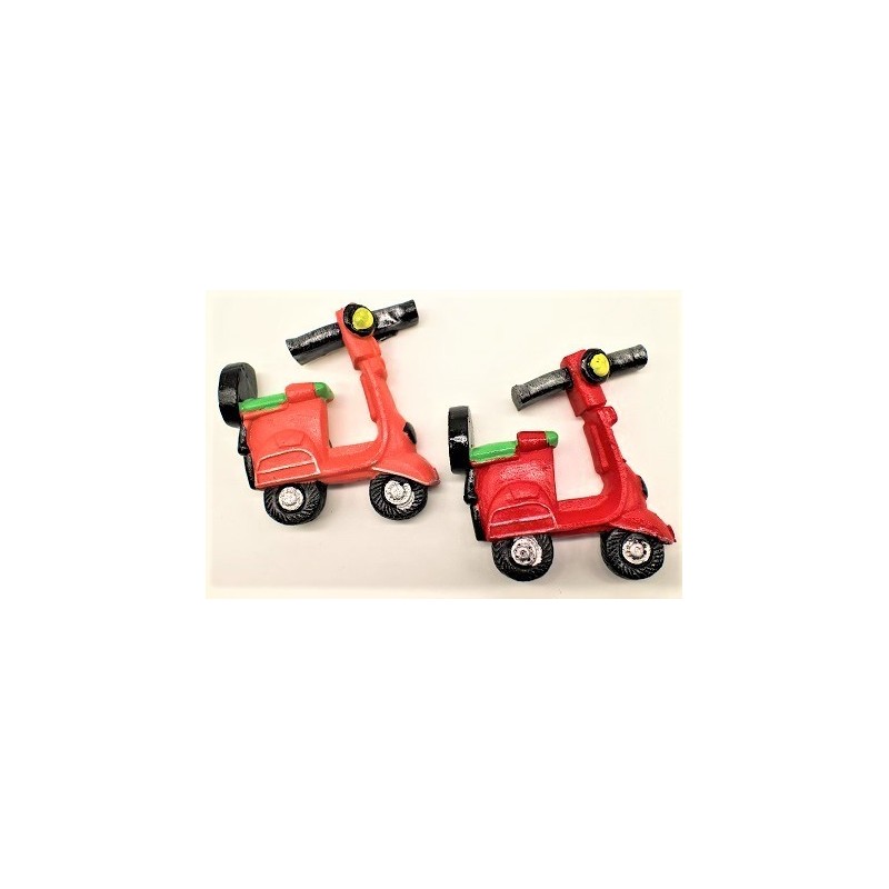 Ce magnet en résine représente une Vespa rouge détaillée avec soin.
