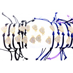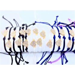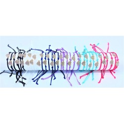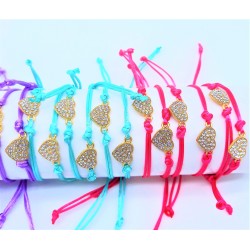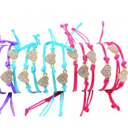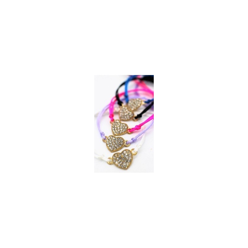 Bracelet avec accessoire petit cœur en strass composé d'un cordon ajustable en nylon de couleur.