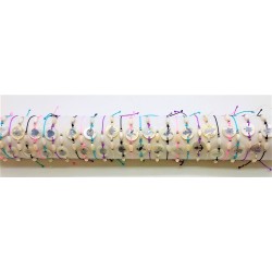 Très joli bracelet monté de perles en nacre avec motifs argentés. Le bracelet est ajustable grace à son fil coulissant. Tubes de 50 pièces.